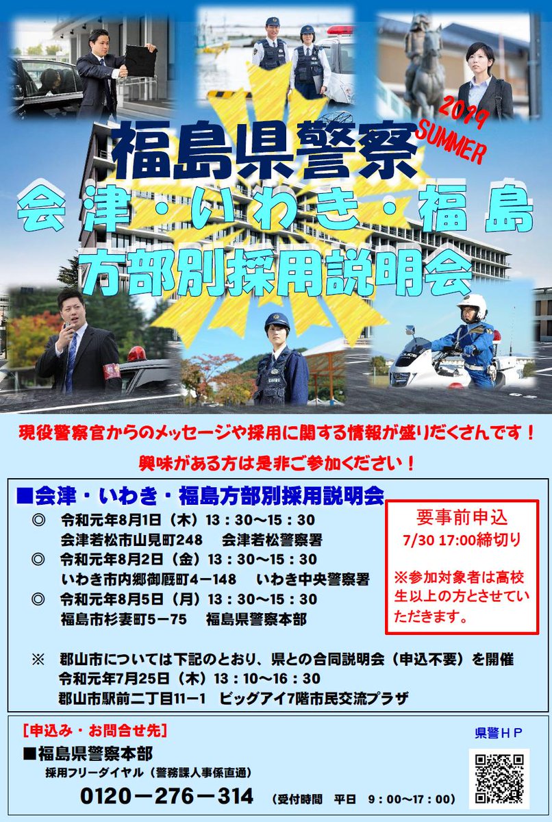参加希望の方は、まだ間に合いますので福島県警察採用フリーダイヤル(0120-276-314)へお電話ください♪(平日9:00~17:00)