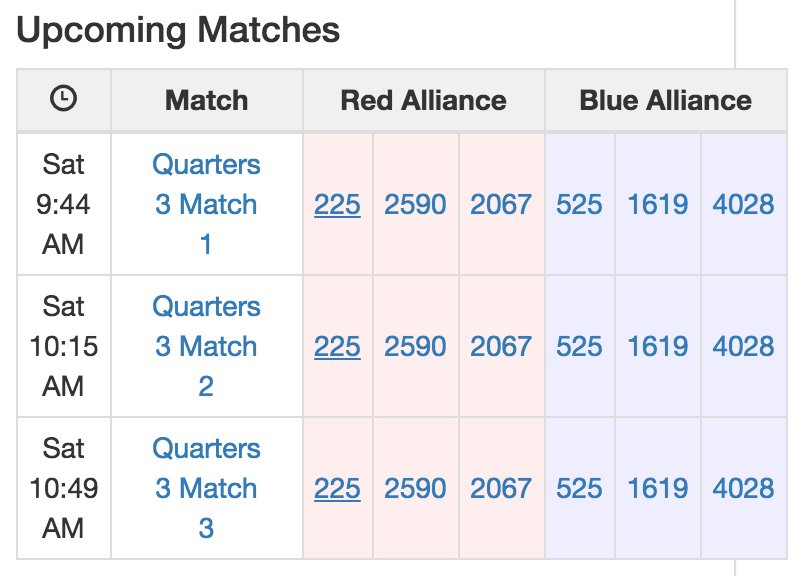 Absolutely thrilled to play with our @FIRSTMidAtl friends @FRC2590 and @FRC225TechFire along with @FRC2067 in elims. We love you guys!