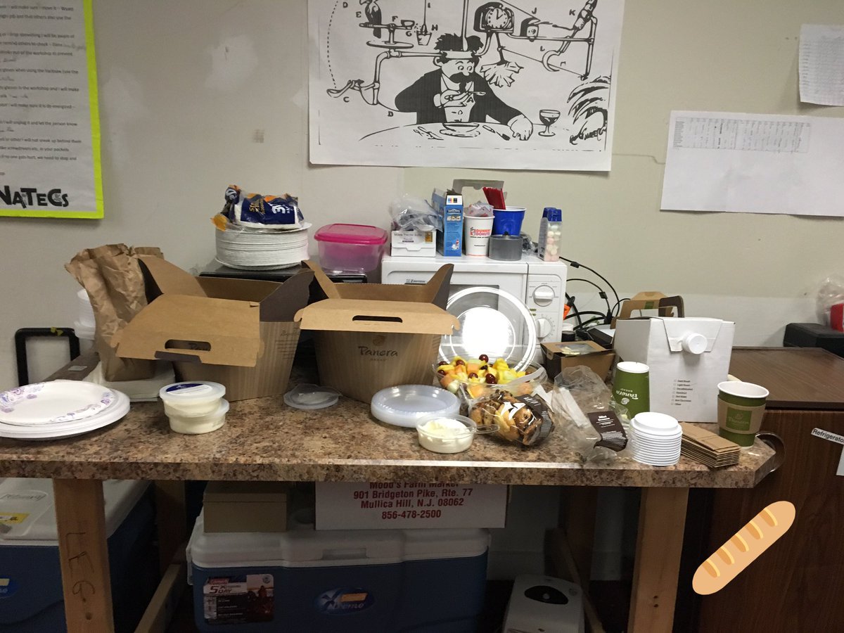 You don't have to rush to eat some last minute breakfast before you leave today!! There'll be breakfast at the workshop thanks to Zach.