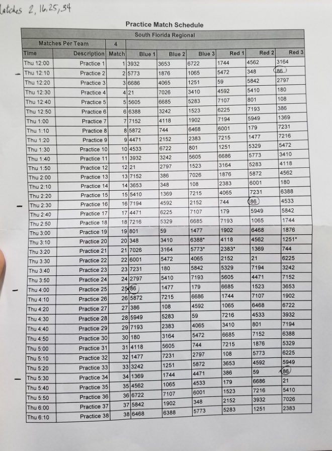 Today’s practice schedule at @SouthFloridaFRC #FirstPowerUp @OrlandoFRC @FIRSTinFlorida @FIRSTweets matches 2, 16,25,34 #Teamresistancepic.twitter.com/VXgmKviruj