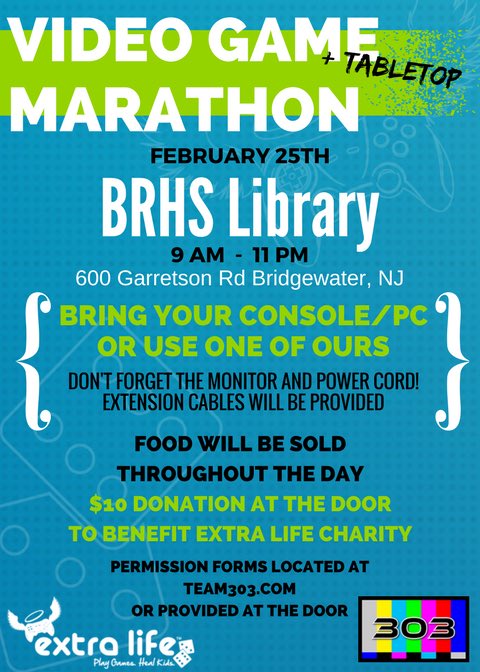 Be sure to visit our Video Game Marathon on Feb 25th in the BRHS library. Permission slips on our website #omgrobots