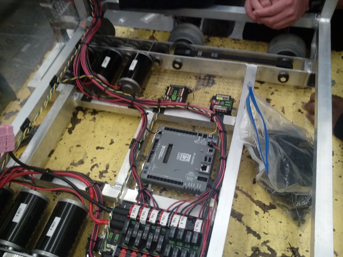 Wiring is done! The rest of the robot will be coming along shortly. Also, code's getting finished, and, vision tracking!pic.twitter.com/JFGmhxreWD