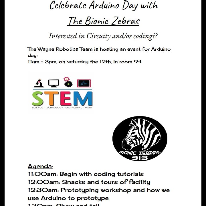 Come celebrate Arduino Day with us! We'll be at Wayne Memorial High School starting at 11am and will be holding a variety of classes on all things Arduino and STEM related. Come check it out! #OMGrobotspic.twitter.com/KbsXOKxdco