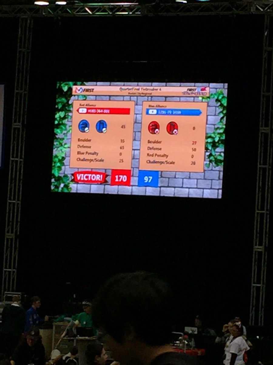 It's onto the Semi Finals. Great score w @FRC801 @TeamFusion364pic.twitter.com/4hE7Ao0qkG