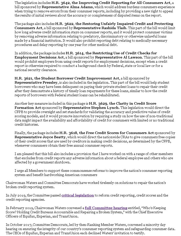 #HR3621), introduced by my friend@RepPressley, is a much needed overhaul of the credit reporting system. Under this bill, reporting agencies will be REQUIRED to better ensure that the information they provide is both accurate and complete.pic.twitter.com/qMP5Dq0ybe