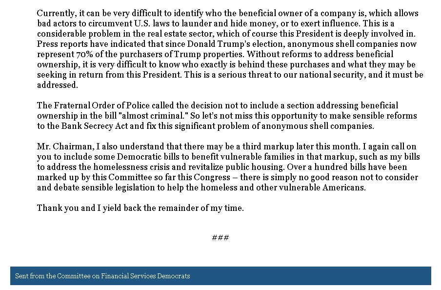 #RELEASE: Ranking Member @RepMaxineWaters to Hensarling at Committee Markup: Consider #Democratic Bills to Benefit Vulnerable Families