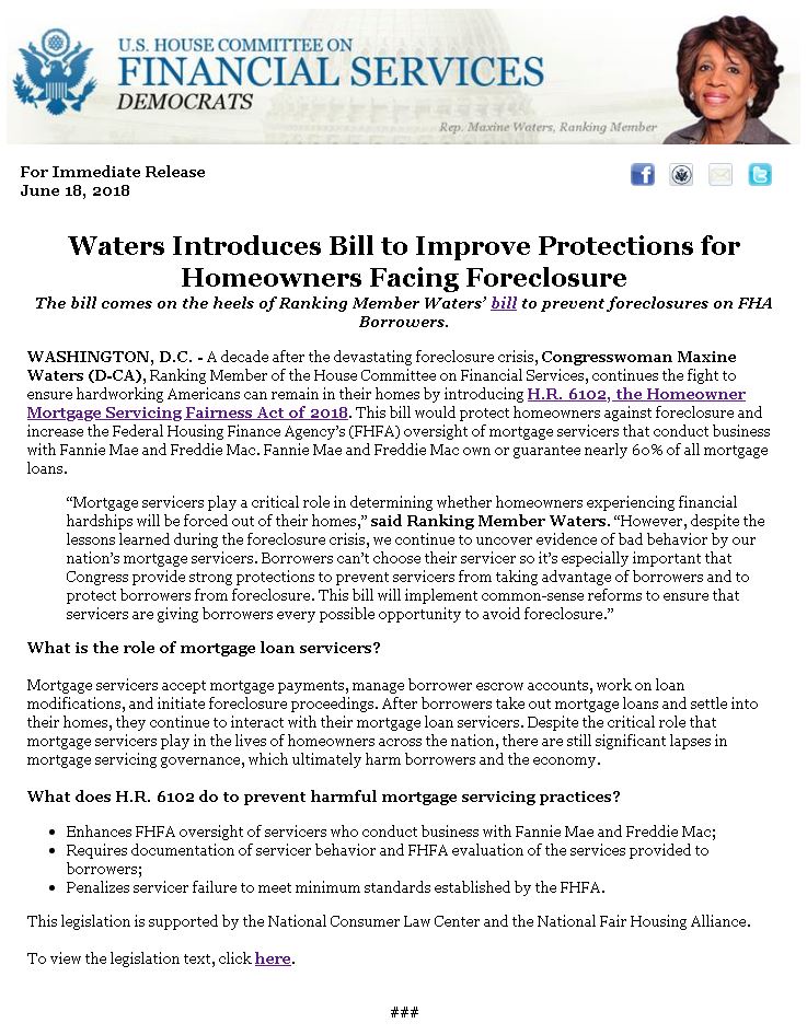 Still fighting for the little guy & gal. Thank you, Congresswoman Waters
