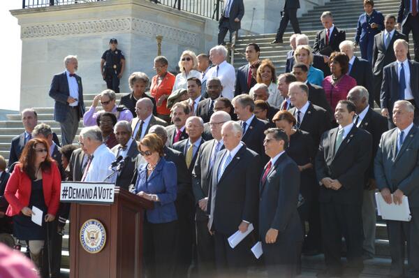 RM @MaxineWaters standing w/ @HouseDemocrats 2 #Demandavote from @SpeakerBoehner on Sen passed CR 2 end #GOPshutdownpic.twitter.com/GZ1iJRgXv0