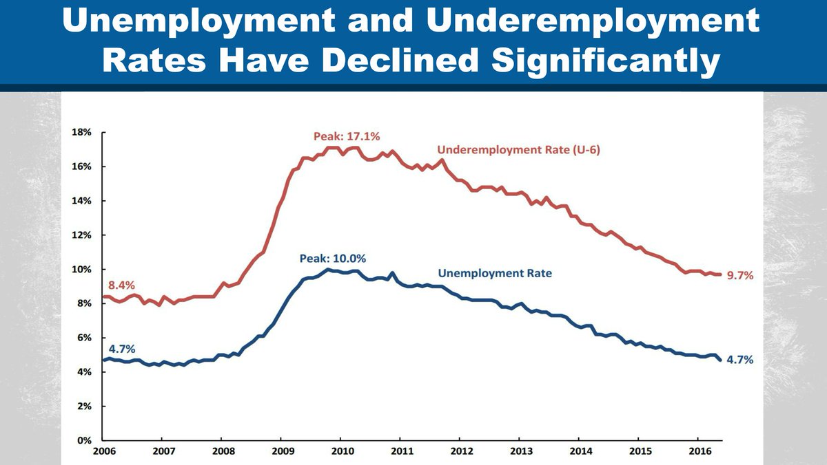 Unemployment & underemployment rates have declined significantly from recession peak - http://1.usa.gov/28Mpf3V pic.twitter.com/sE5nn6gHct