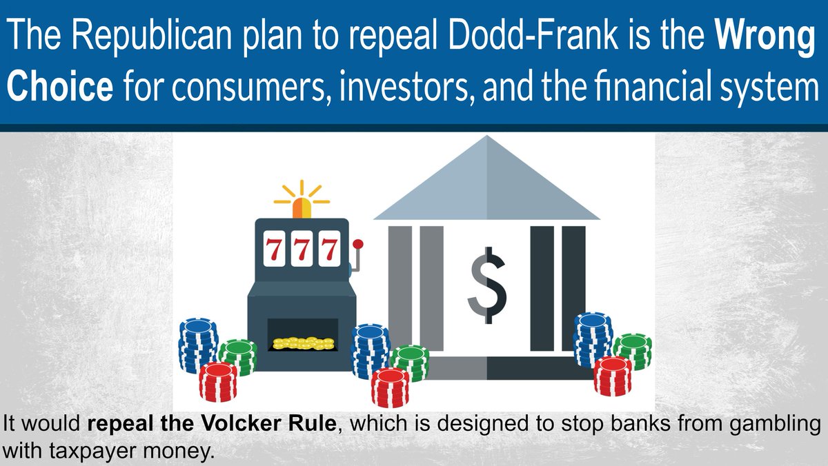 The #WrongChoiceAct would repeal the Volcker Rule, which is designed to stop banks from gambling w/ taxpayer money.pic.twitter.com/rh1mjVmG1R