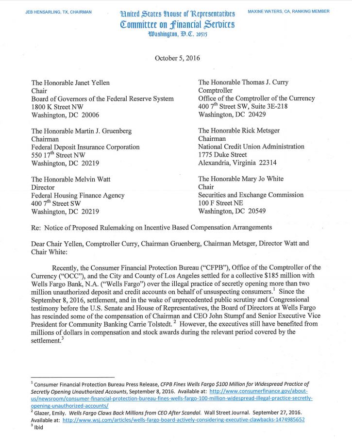 READ: Committee Democrats urge fin. regulators to require curbs on executive bonuses in cases of bank misconduct - https://goo.gl/43JRhe pic.twitter.com/g8O0zjitnK