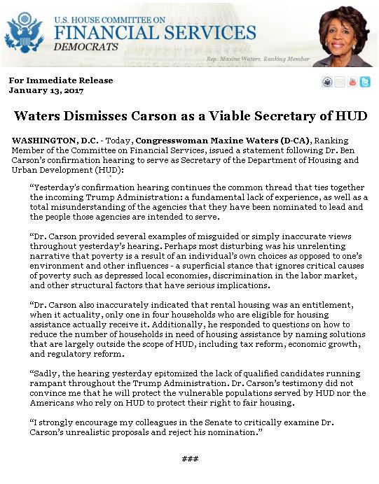 "The hearing yesterday epitomized the lack of qualified candidates running rampant throughout the #Trump administration." #CarsonHearingpic.twitter.com/ZDSB6PrVrS