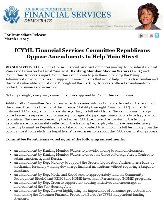 Financial Svcs Dems‏Verified account @FSCDems 1 Mar 2017