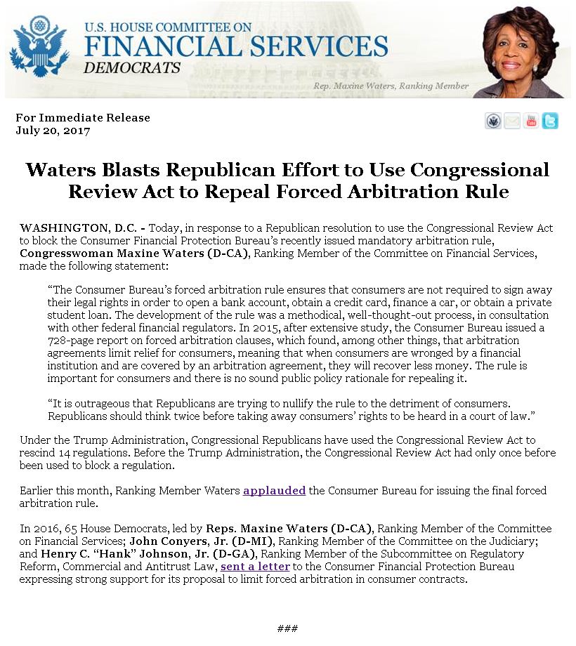 "#Republicans should think twice before taking away #consumers’ rights to be heard in a court of law." - RM @MaxineWaterspic.twitter.com/P9RB5jDaJG