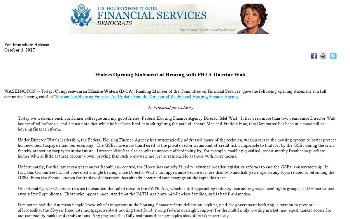 Dir. Watt has sought to improve affordability by enabling qualified, credit-worthy families to purchase homes. - RM @RepMaxineWaterspic.twitter.com/2LZiC6YXcD