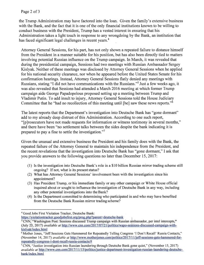 Ranking Member @RepMaxineWaters wrote to @TheJusticeDept Deputy Attorney General Rod Rosenstein to request information on the status of the Department of Justice’s investigation into #DeutscheBank’s #Russian mirror trading scheme.pic.twitter.com/wQ8VBomVOO