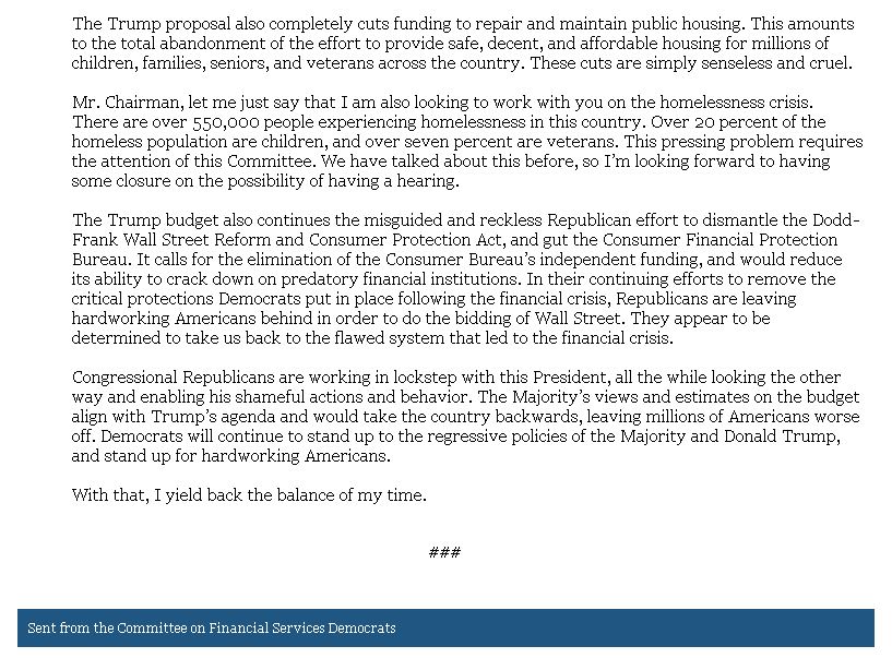 "Mr. Chairman, Cmte Democrats are committed to advancing policies that create shared prosperity & economic opportunities for all, ensure fairness in our economy, protect consumers from predatory practices, & support vulnerable families." - @RepMaxineWaters https://go.usa.gov/xnuSe pic.twitter.com/z22z8p6i9o