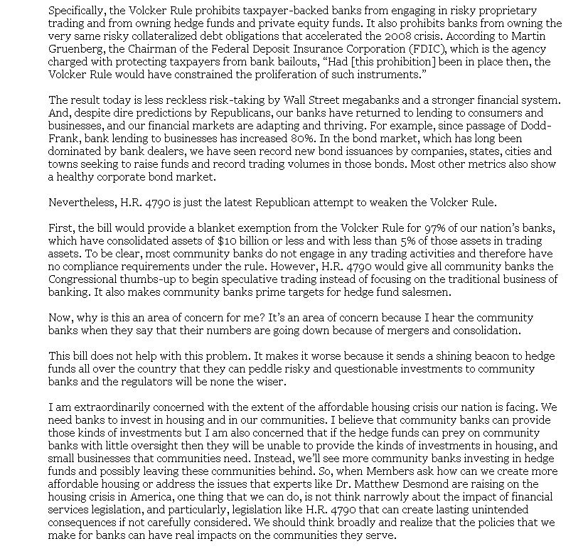 Ranking Member @RepMaxineWaters gave the following floor statement in opposition to #HR4790, the third bill on the House floor this week that would provide a giveaway to Wall Street megabanks.