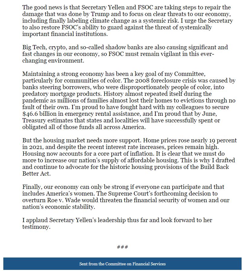 @FSCDems to receive a report from@SecYellen of the@USTreasury on our nation's financial stability.pic.twitter.com/tgFmU9plxx
