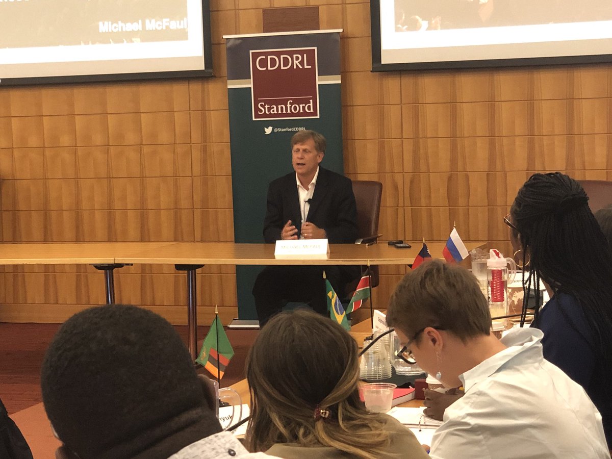 @FSIStanford director@McFaul today with our#draperhills18 fellows from 23 countries discussing democracy. McFaul founded this program 14 years ago and his lecture is always a highlight of the fellowship for the fellows, faculty and the staff present.pic.twitter.com/nT5Y0j0NH0