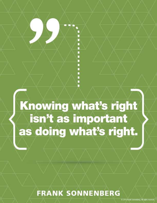 "Knowing what's right isn't as important as doing what's right." ~ Frank Sonnenberg ➤ http://bit.ly/2wV7Zr1