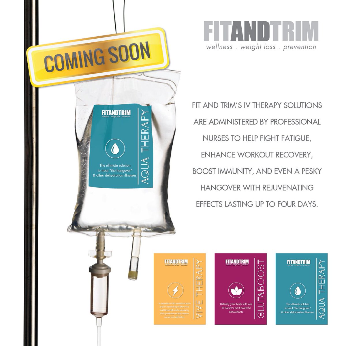 IV Therapies are coming soon to Fit and Trim! - Aqua Therapy - GlutaBoost - Vive Therapy 954.200.7744 | http://www.fitandtrimweightloss.com pic.twitter.com/1tpEWer1M5