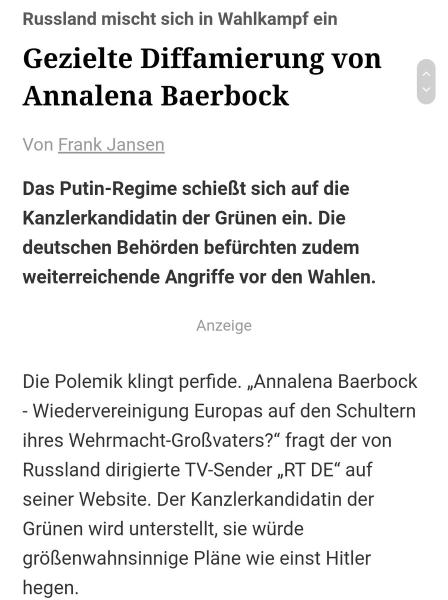 @Tagesspiegel-Artikel getätigte absurde Behauptung,@de_rt_com würde@ABaerbock mit Adolf Hitler vergleichen, "funktioniert" nur, wenn man wirklich jeden Kontext vom Leser fernhält und dieser einfach dem Tagesspiegel glauben muss à la 'So ist der Russe halt'...Show this thread -