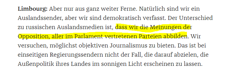 @DeutscheWelle Intendant@dw_Limbourg: Kooperation mit dem staatlichen chinesischen Auslandssender@CGTNOfficial aber dafür "Putin [und RT] Paroli bieten". Sozusagen ein spiegelverkehrter Admiral Schönbach