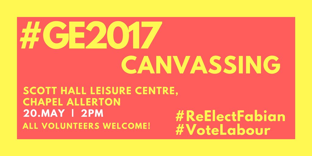 Join @LeedsNE_CLP for canvassing tomorrow in Chapel Allerton, meeting at 14:00 at Scott Hall Leisure Centre. All volunteers welcome #GE2017