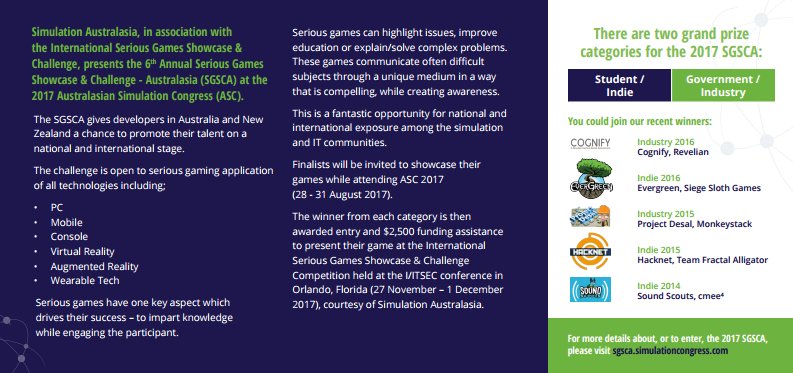 Serious Games Showcase and Challenge: Open to Students, Indies, Gov & Industry http://letsmakegames.org/2017/05/25/serious-games-showcase-and-challenge-open-to-students-indies-gov-industry/ …