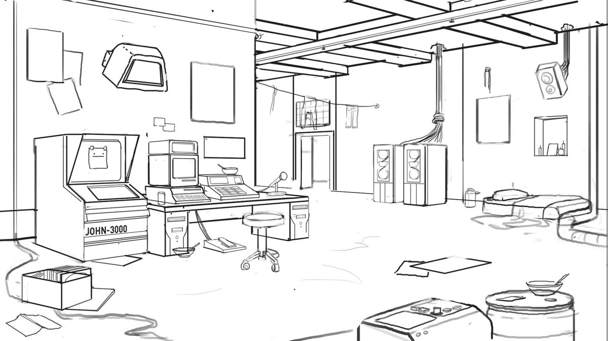 The original drawing for Paradigms room. I drew this in 2012 when I was wee fellow trying to turn every uni assignment game related.pic.twitter.com/fandbJy8Oq