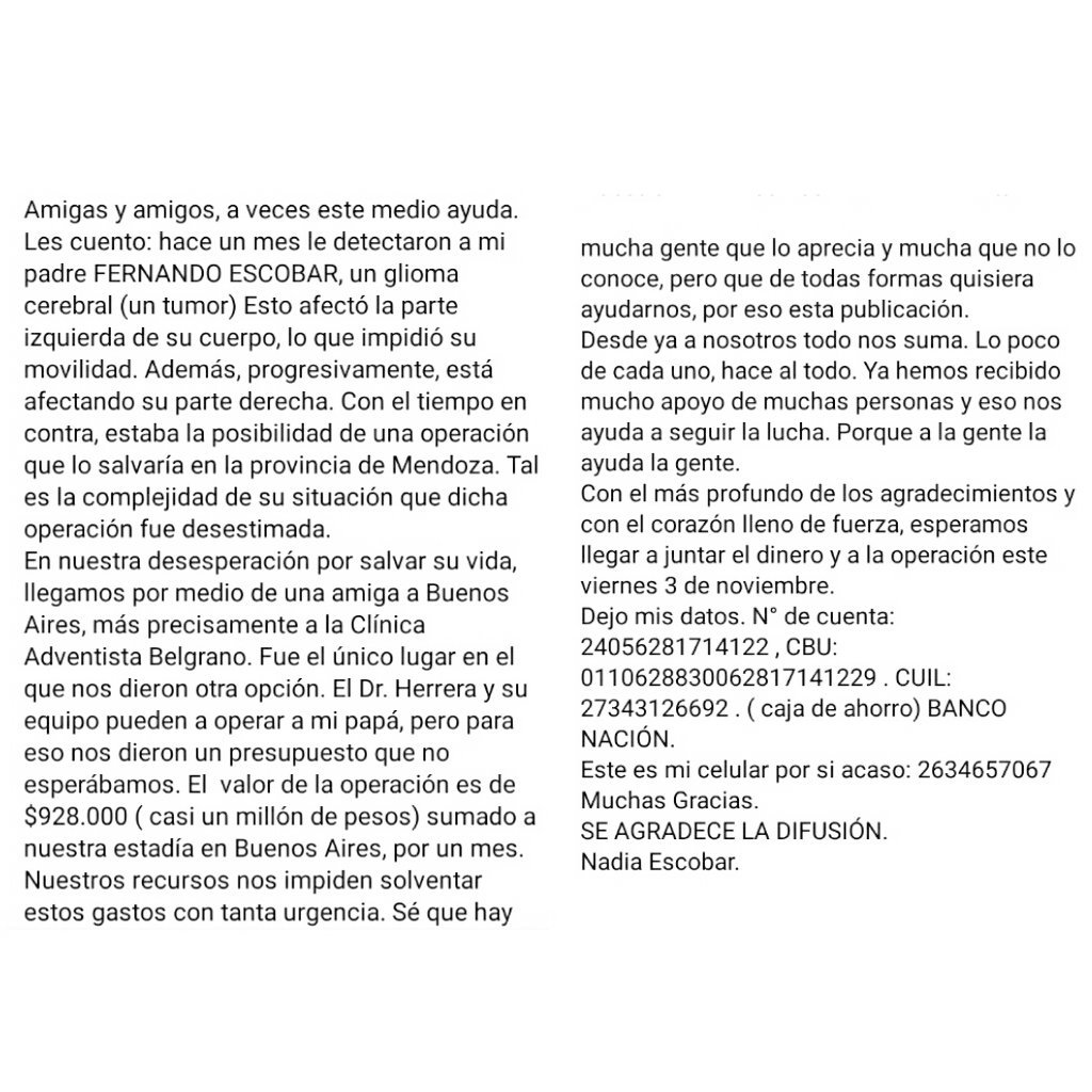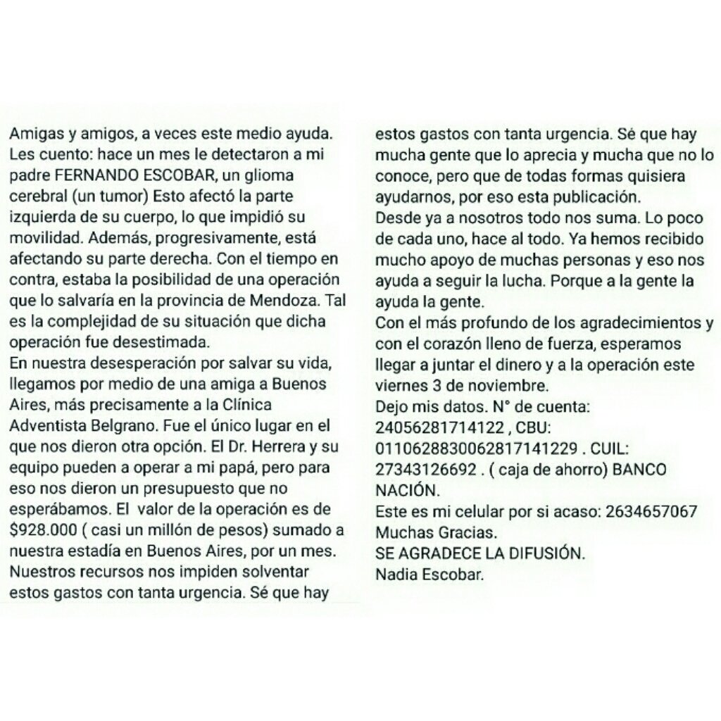 Necesitan $1 Millón antes del viernes para operarlo y salvar su vida. Es el padre de una gran amiga. Por favor