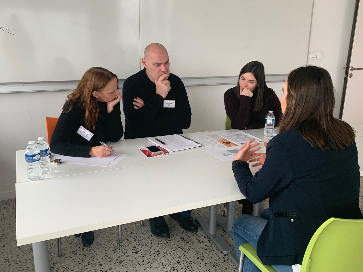 En direct Recruitment party : Journée dédiée à la simulation d’entretiens Pierre-Yves Kerbrat, dirigeant EKIP SPORT, Gaëlle Boulbr responsable master marketing vente, étudiante alternante RH auditonne étudiante 3ème année licence Économie-Gestion