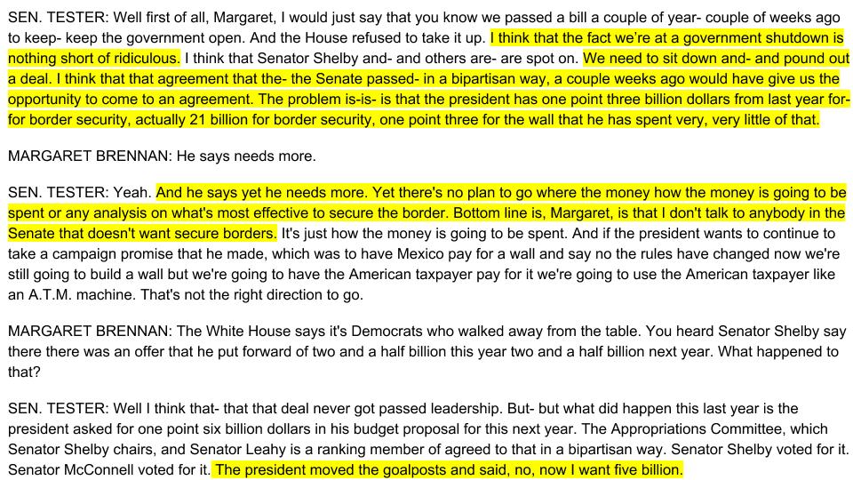 REPORTER: "What is the safety net for federal workers... those who need SSI, those who need Medicaid..." PRESIDENT: "The safety net will be having a strong border because we will be safe. I'm not talking about economically, but ultimately economically." https://cbsn.ws/2TqVASX pic.twitter.com/lfnmPHSB5q