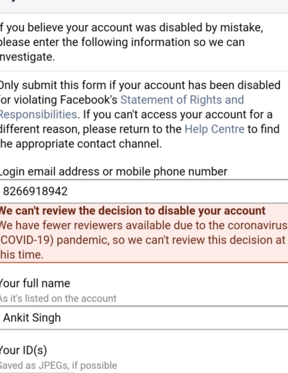 Dear Facebook Team pls Revert, After Putting Mobile Number Showing This Massage Please check The bellow screenshot. I can Humble Request To You Please Help As soon As Possible Because This Facebook id Or Instagram Is Much Important To Me.... Pls Helppic.twitter.com/mDRjo8IsvF