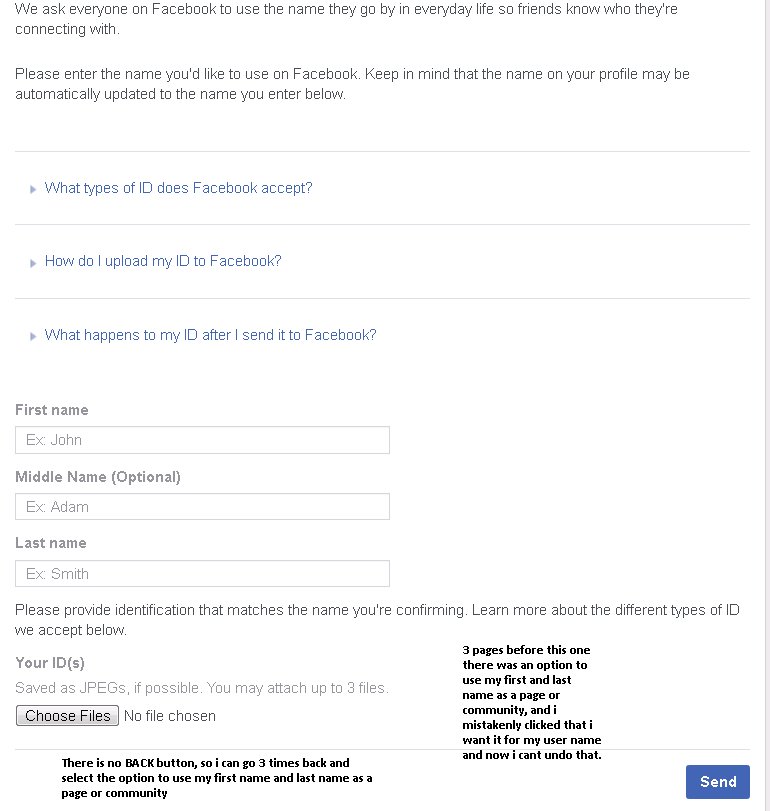 Hey @facebook i need help with reseting my options, to use my first name as a page or community?