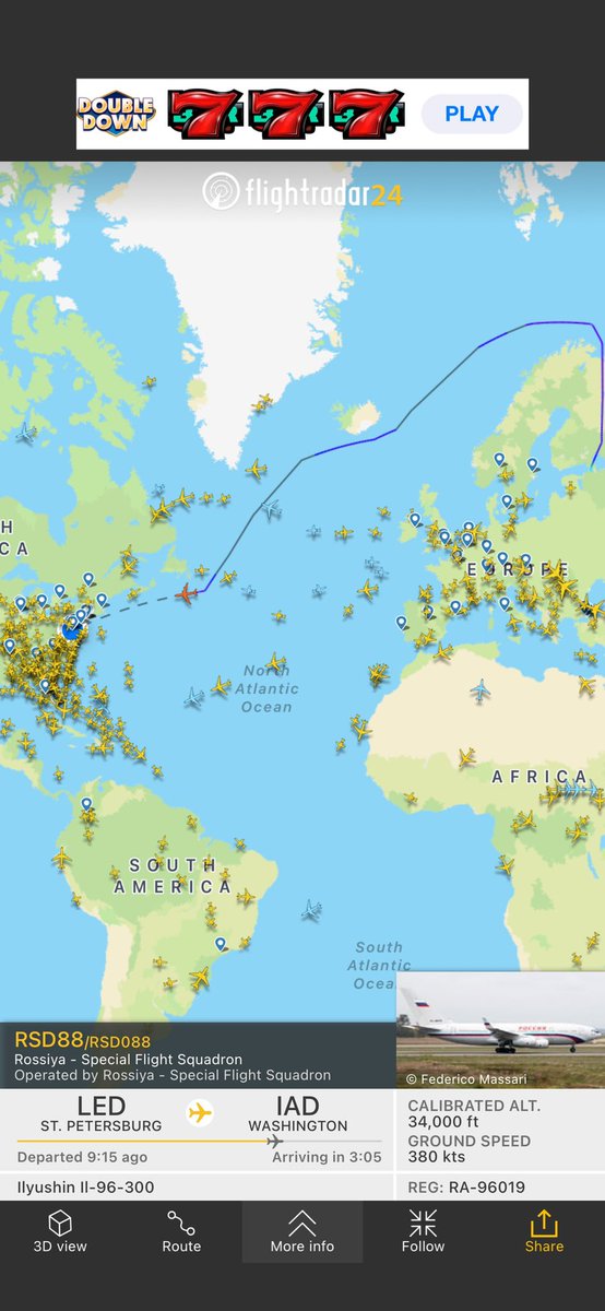 RSD088 / RA-96019 lands @ 2 in Dulles from St. Petersburg. Guess we will find out who is coming to DC on this diplomatic flight then…pic.twitter.com/vXa1pwipOT