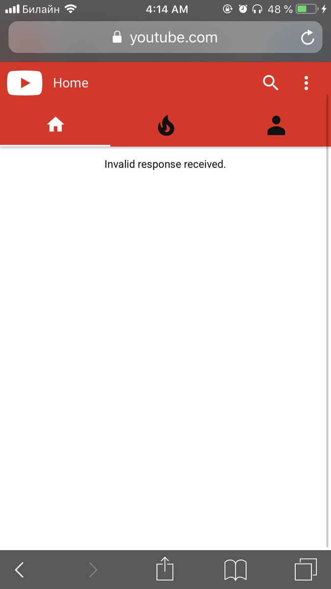 Huh..? @TeamYouTube #invalidresponse #youtubedown?pic.twitter.com/2A6RpMDMbG