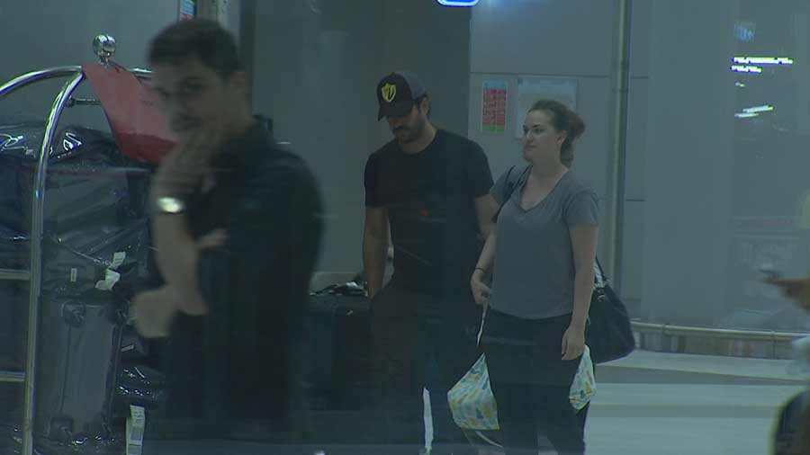 جديد بوراك أوزجيفيت و زوجته فهرية إيفجان أوزجيفيت من عودتهم في مطار إسطنبول أمس