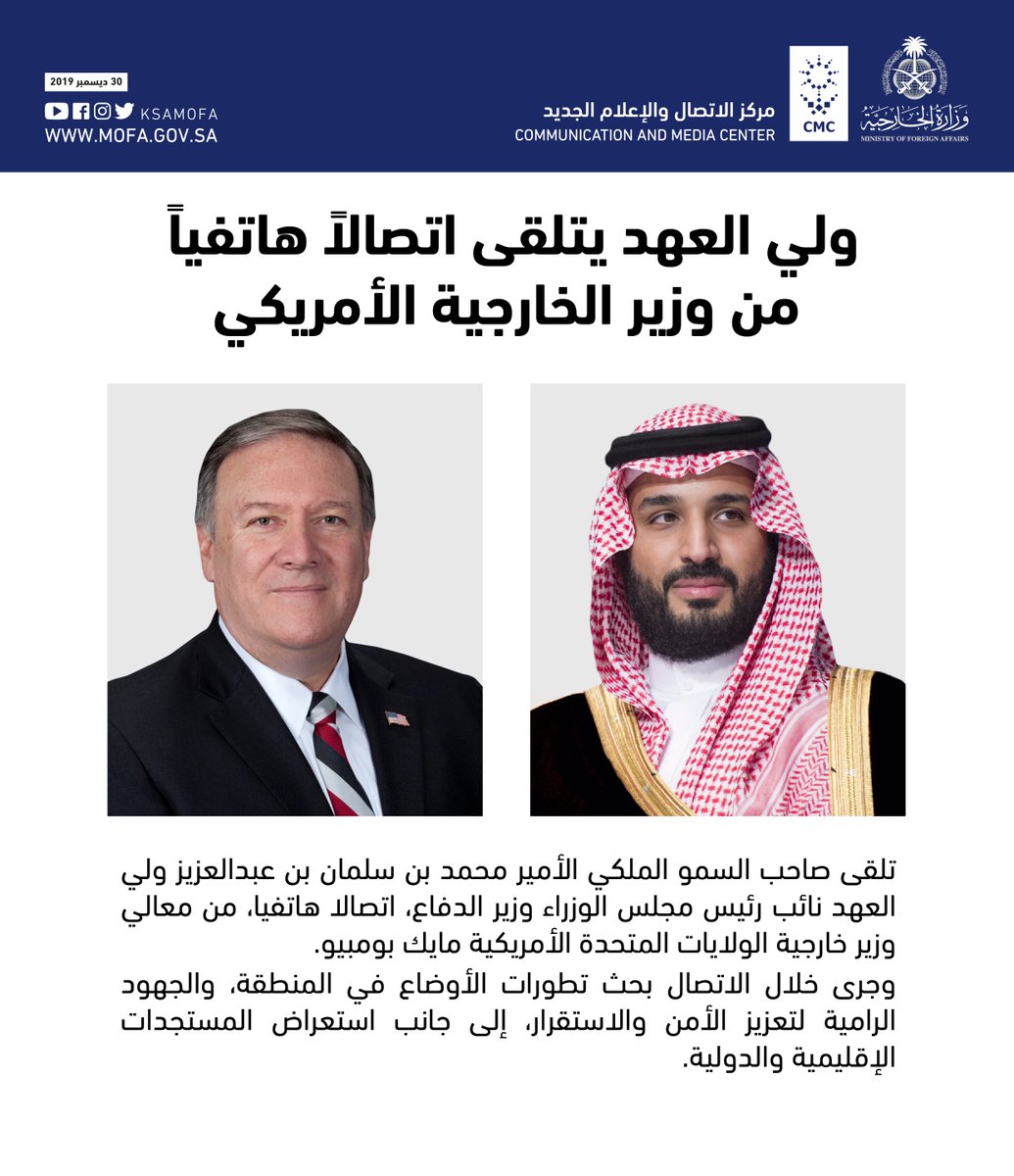 #ولي_العهد يتلقى اتصالاً هاتفياً من وزير الخارجية الأمريكيpic.twitter.com/VYJU4dpJPT