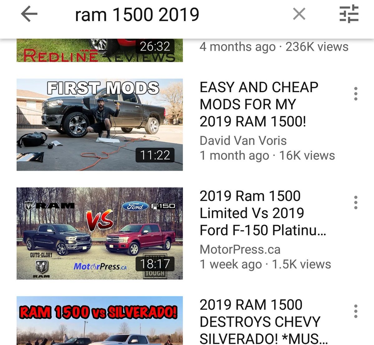 I looked up the new Ram 1500 after clearing out YT cache and data.