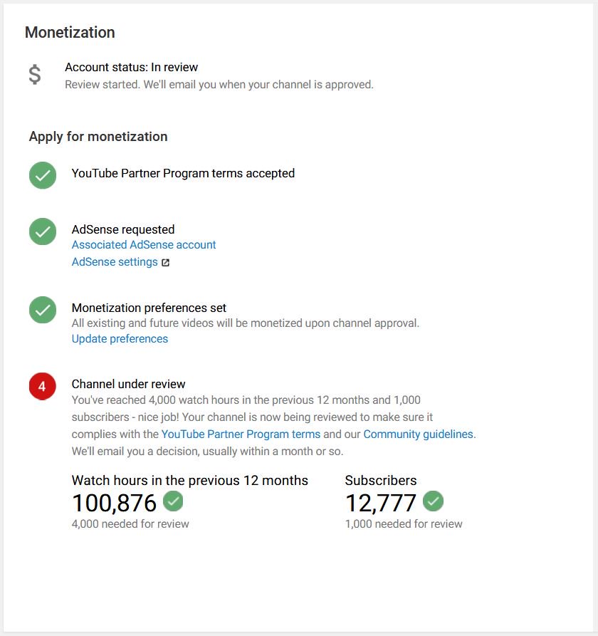 This screen looks the same for 8 months, just the numbers keep changing as I gain more watchtime and subscribers.pic.twitter.com/8HOoWOLjAc