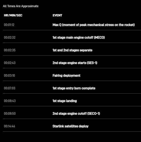 The mission timeline for the 15th #Starlink mission consists of just one upperstage burn, starting after stage sep and ending at T+08:50. Payload deploy will occur at T+0:14:46. #Falcon9pic.twitter.com/iQ0Vurhwns