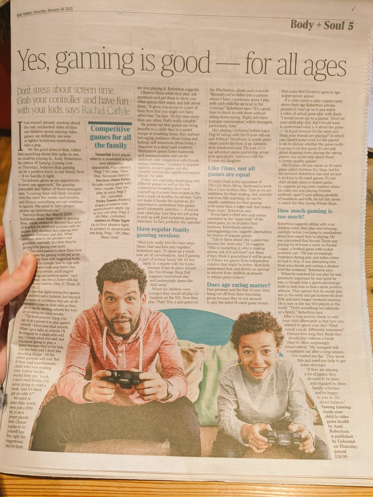 @TamingGamingDB book in The Times today. https://www.thetimes.co.uk/article/yes-gaming-is-good-for-all-ages-d2l9nfcdh …pic.twitter.com/0TV3I59alo