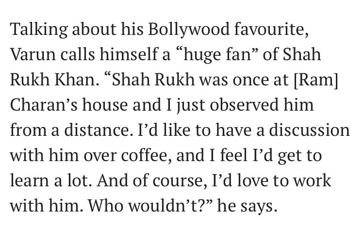 Tollywood Actor Varun Tej wants a coffee date with Shah Rukh Khan