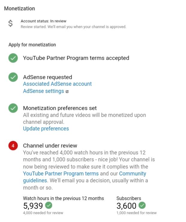 I have already completed 4000 Watch hours and 1000 Subscribers. My request you to please review my channel and enable monetization as soon as possible.Thank you