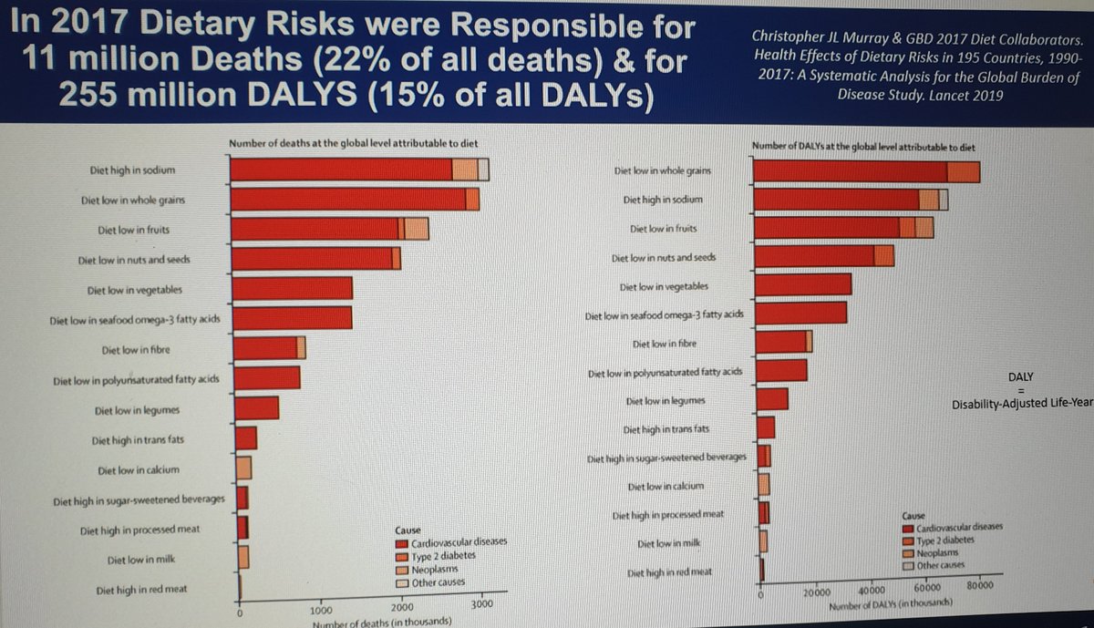 #OFC2020 by Prof Alice Stanton. Nutritional risk factors have overtaken cigarette smoking as causes of death and disease burden globally. High salt biggest issue. Red meat accounts for less than 0.5%.pic.twitter.com/MAvHtXMmMp