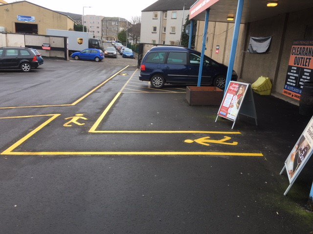 New disabled car parking bays lined today at a new Marston's pub in Dundee