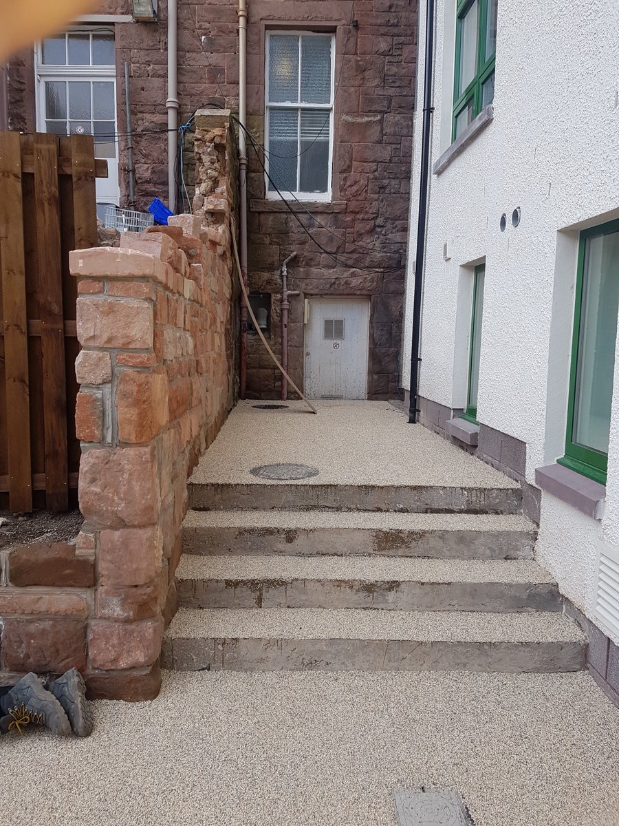 Decorative resin bonded high friction surfacing done last year at Muirfield Nursing Home in Gullane, East Lothian