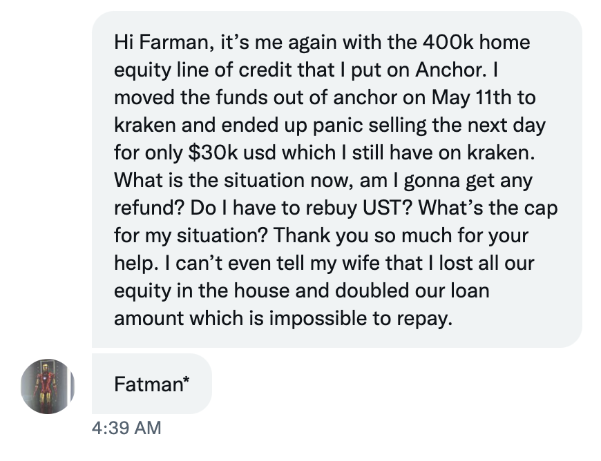Same for all the other protocols that were interacting with anchor, people lost their money, either because of holding next to nothing, panic selling, or liquidation..